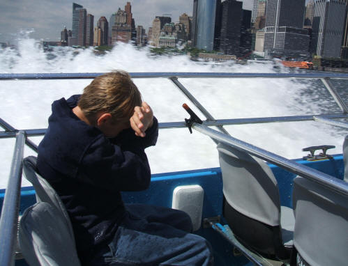 Josh enjoying "the Shark" speedboat ride. |