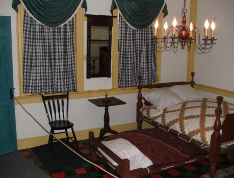 ![]() This is the room Joseph was sleeping in when the mob came and drug him outside, tarred and feathered him, and tried to get him to drink poison from a vial. He saw Sidney Rigdon laid out already with wounds to his head and thought he was dead. They have removed the paint back to the original then refurbished the rooms with all the original colors and patterns. |