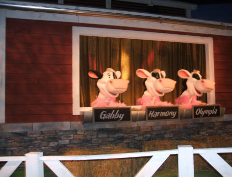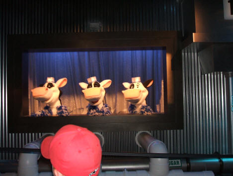 Sarah is riveted at the Hershey factory tour. She'd never seen singing cows before.